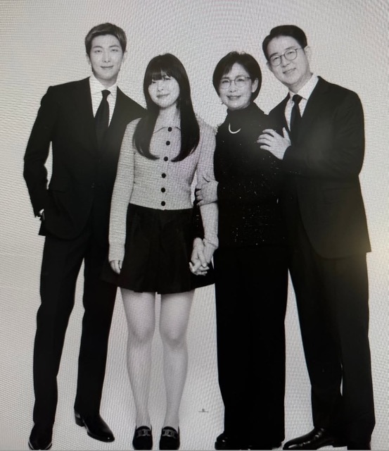 In the first picture he uploaded to his Instagram Story, the family presents their finest look, dressed formally and neatly. Kim’s father and RM are wearing identical suits, perfectly embodying the image of dependable family men, while his mother appears gentle and graceful, and his younger sister looks so pretty — the cherished women of the family.