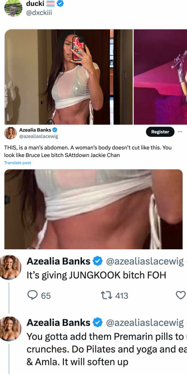 In particular, things became more tense when Banks compared Ducki's body shape to Jungkook's when commenting on the female DJ's abs. "THIS, is a man’s abdomen. A woman’s body doesn’t cut like this. You look like Bruce Lee b*tch SAttdown Jackie Chan. It’s giving JUNGKOOK b*tch FOH", she commented below Ducki's photo.