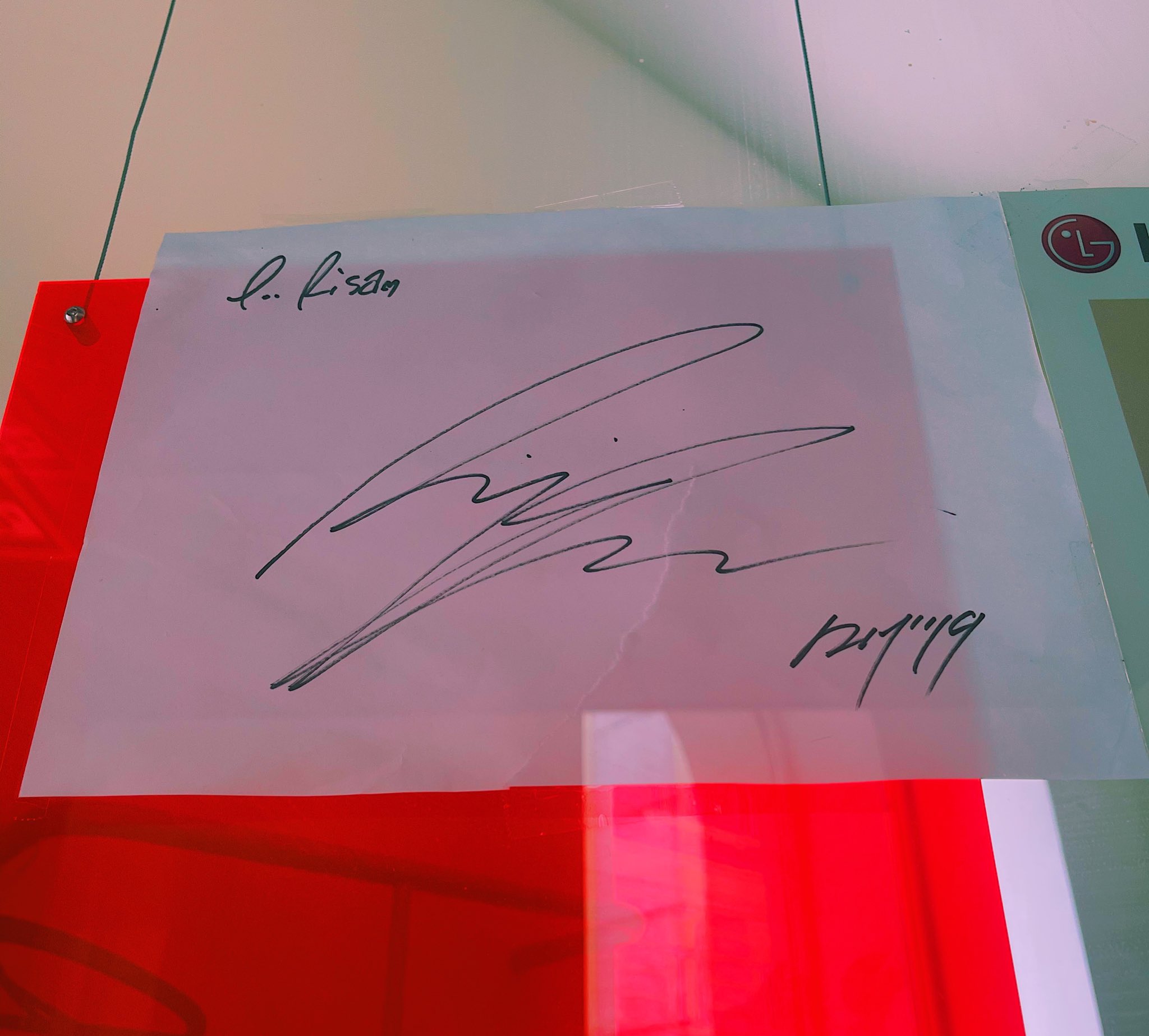 The restaurant even prepared a special dessert for this special guest, soмєтнing that was not on the menu. In response to the restaurant's dedicated service, RM left an autograph for them and the restaurant hung it at the entrance next to a poster of BTS as a souvenir of the visit.