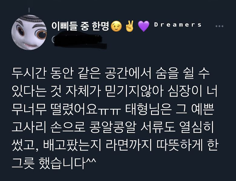- Thanks for the news. ㅠㅠ Also, thank you very much for the note. Taehyung seems to only be seen by really nice people
