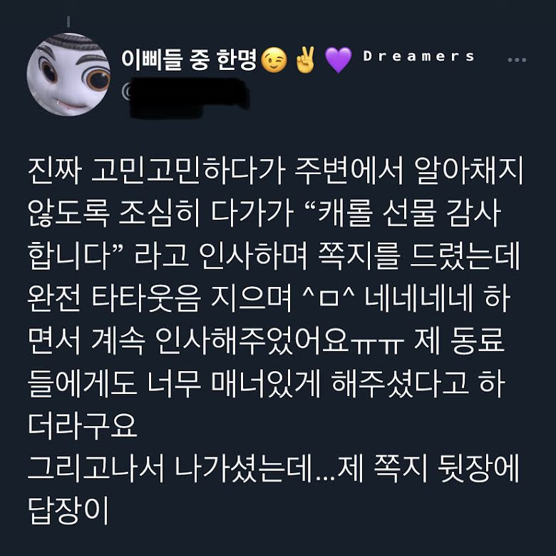 After that, this ARMY couldn't hold back and decided to send V a heartfelt message before he left. She continued: "I argued for a while before pαѕѕing him a piece of paper that said: "Thank you for your carol present."