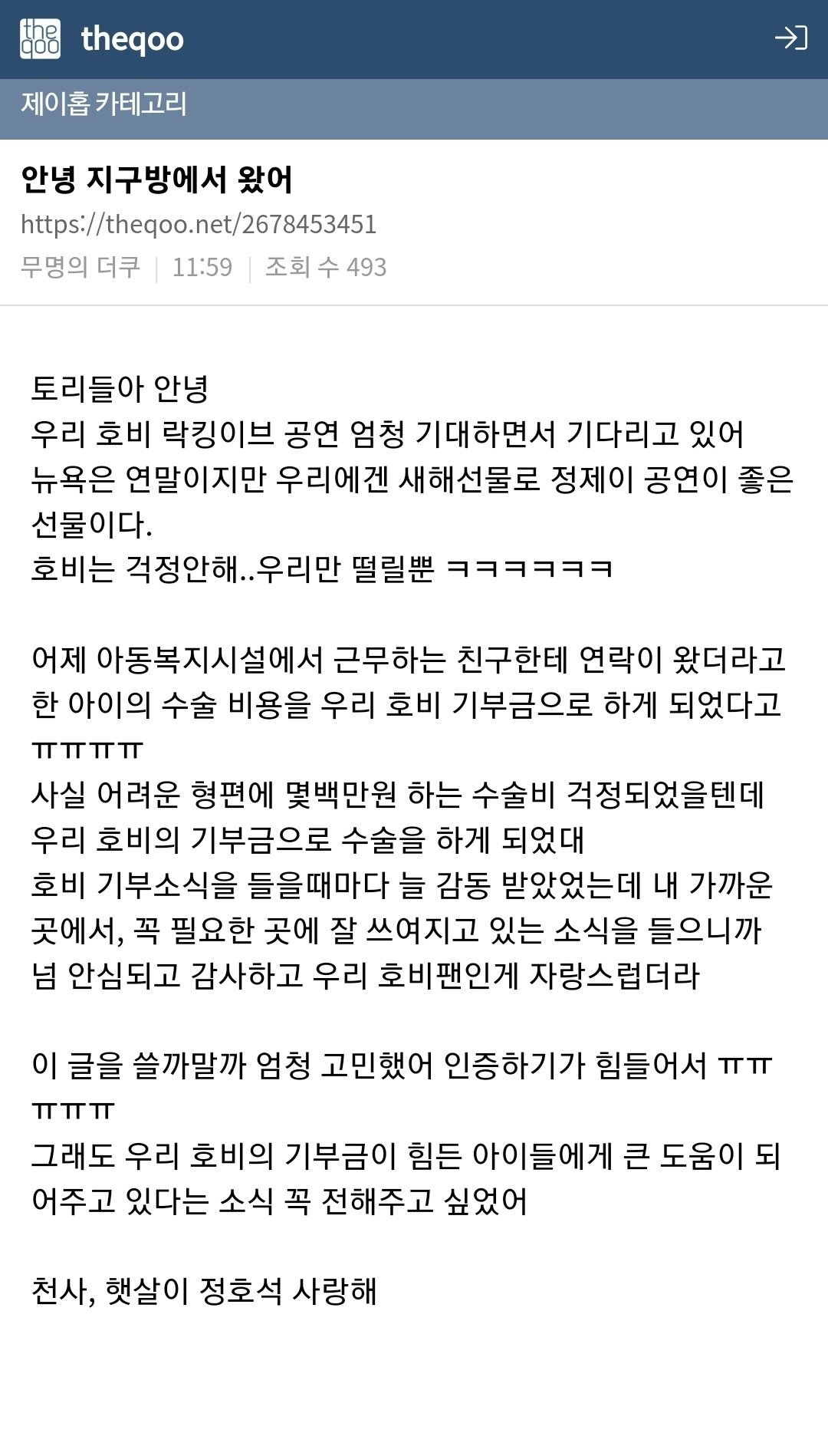 Specifically, this ARMY shared: "Yesterday I got a call from a friend working for a child welfare organization and heard that the cost of a kid's surgery was to be covered with our Hobi's donation ㅠㅠㅠ the surgery costing millions of won (thousands of dollars) must have been concerning to the family in need. But the kid got to have the surgery thanks to our Hobi's donation."