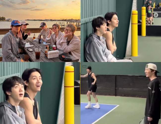 Meanwhile, the BTS members also took the opportunity to enjoy their rare downtime in the welcoming city. They were spotted having dinner together at a beachfront restaurant at sunset before their first show. Most recently, after two consecutive concert nights, they were seen relaxing with a game of pickleball ahead of their third performance.