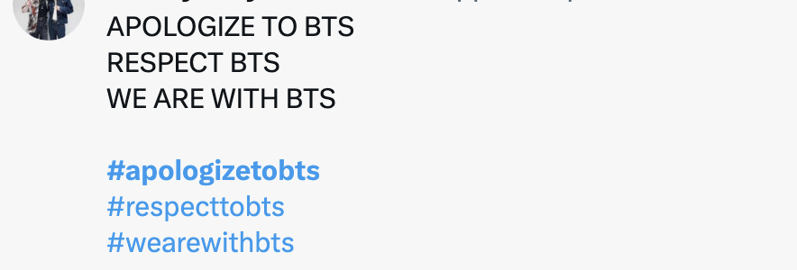 In the face of the increasingly amplified misunderstanding, ARMYs could not stand it and began to speak out about the truth. Along with that, ARMYs also trended hashtags to ask for respect and apologies from those who ĨŃŚÚĹŤed ARMY and BTS without caring about the truth.