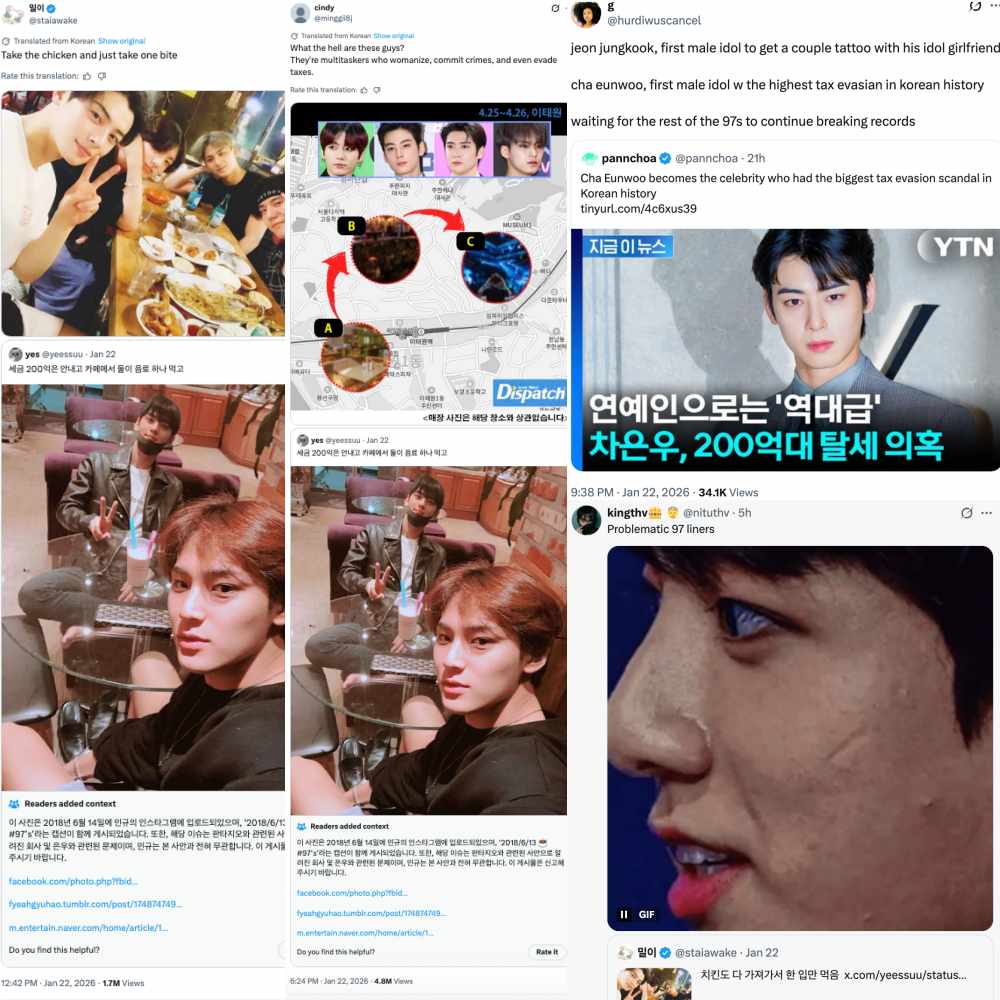 Numerous posts resurfaced old photos and moments of Cha Eun-woo with Jungkook and other 97 line members such as SEVENTEEN’s Mingyu, GOT7’s Yugyeom, and NCT’s Jaehyun. These posts mocked the tax dispute while emphasizing their connections, implying that all of them were somehow complicit in wrongdoing.