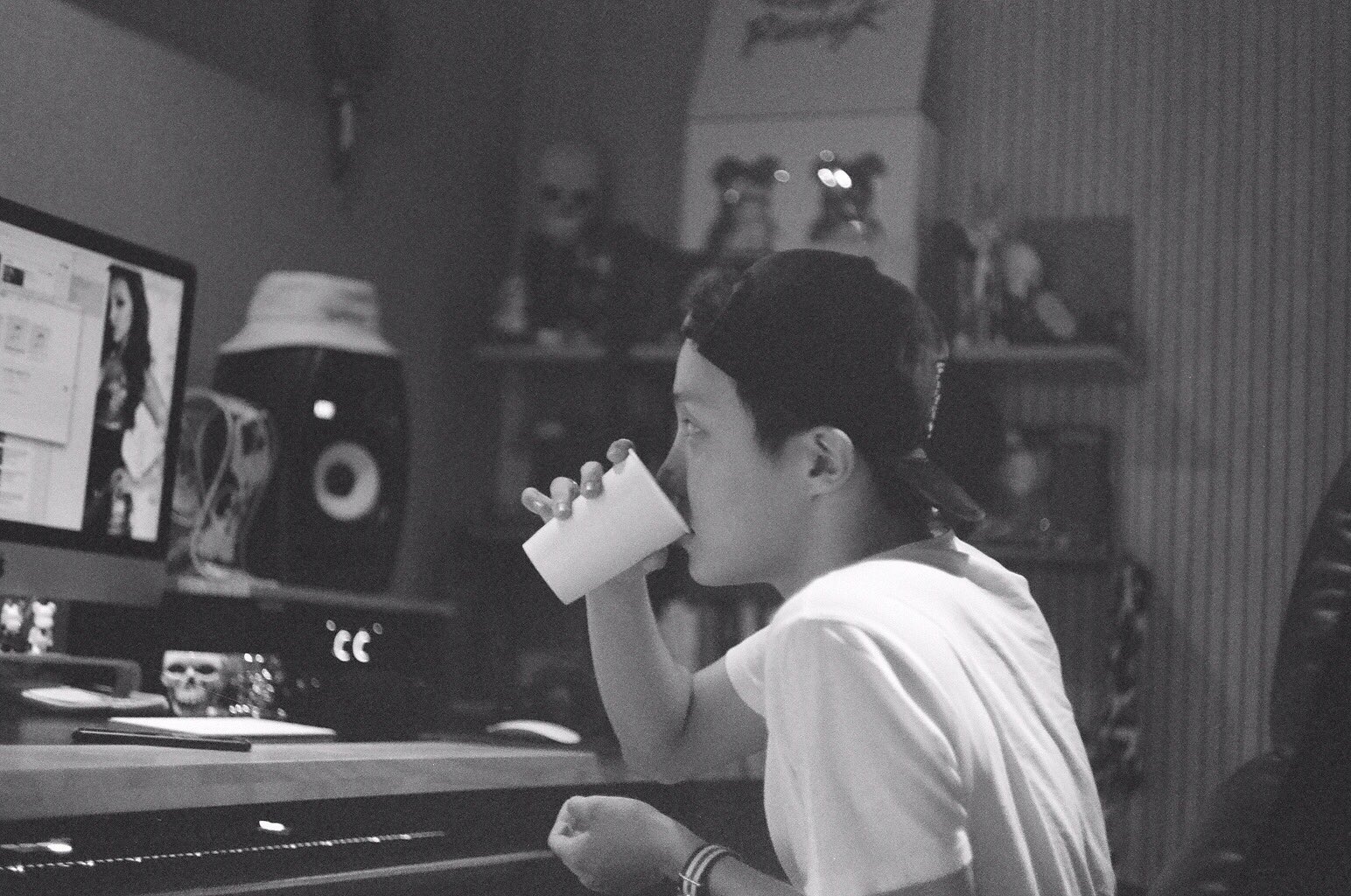 It first appeared when the j-hope video listening to SUGA's mixtape in his studio. Although it's hard to see who the woman in the background is because of the backlight, when Jungkook uploaded a video of him playing in j-hope's studio, ARMYs found the girl's identity.
