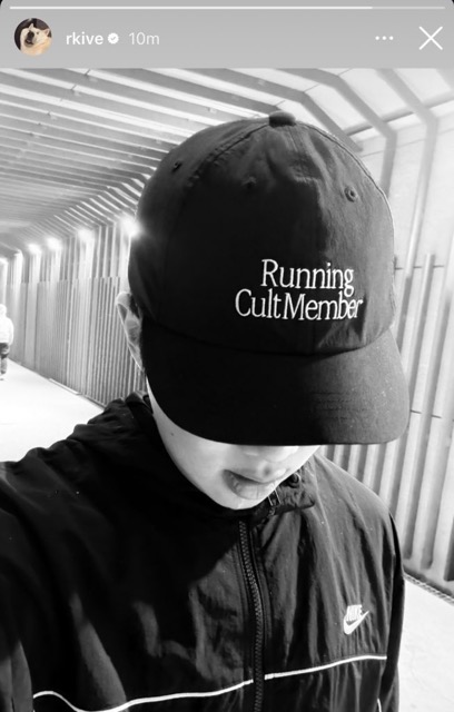 Just a few minutes after V's livestream, RM also shared a selfie on his Instagram Story, and fans immediately noticed that the rapper was wearing a Nike running jacket.