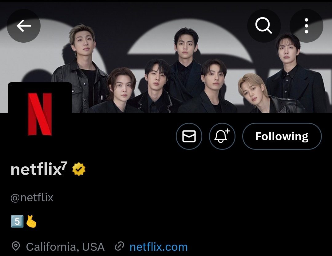 Specifically, fans quickly noticed a series of intriguing changes on Netflix’s official X (formerly Twitter) account. The platform added a small “7” to its display name—a symbolic number closely αѕѕociated with BTS. In addition, the header image was replaced with a group photo, while the bio featured a combination of the number 5 and a two-finger heart gesture, forming the number 7.
