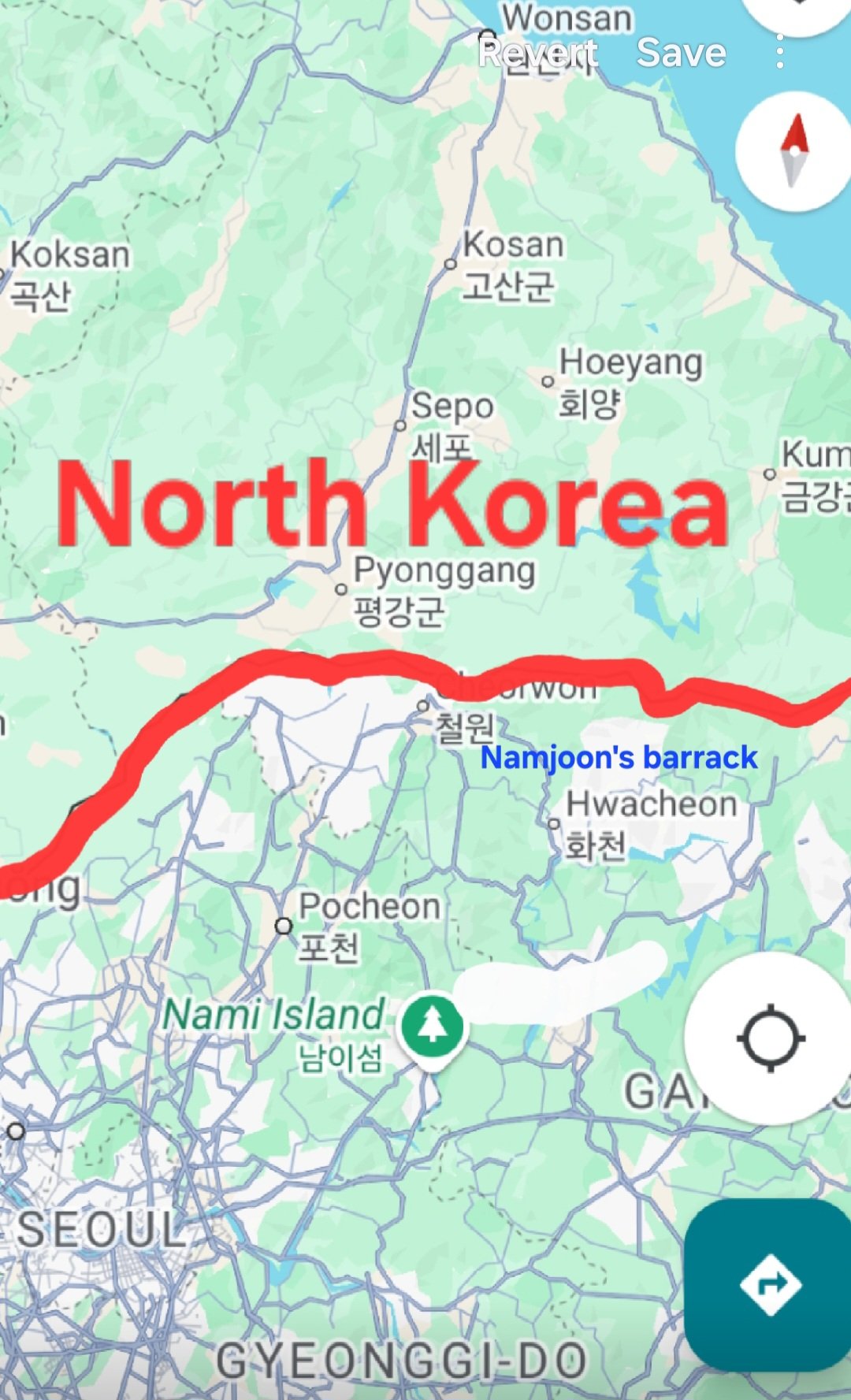 RM enlisted as a member of the ROK military band in December 2023. The place where RM is stationed is reported to be in the Hwacheon base area, close to the northern border between South кσяєα and North кσяєα, but ARMYs also do not have much information about this location when searching on SNS.