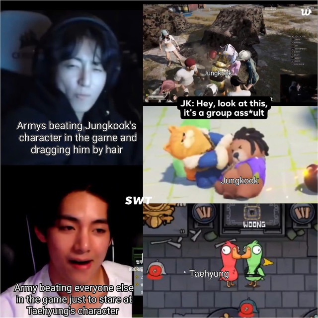 - They say we reflect our biases. So if TaeTae is sensitive and sweet he gets fans that wait for him to finish the game. If JK is competitive with peers he gets fans pulling his character's hair, smacking the character in games. Hahahahha