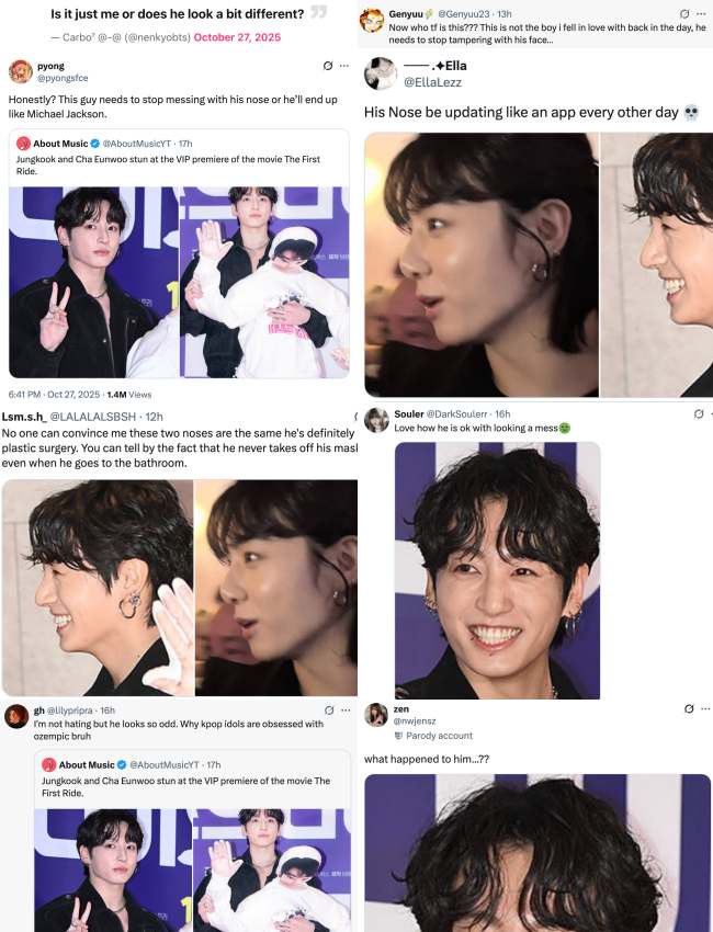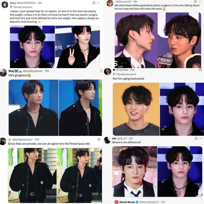 ARMYs also noted that some people deliberately used low-quality or even edited photos to falsely accuse Jungkook of having cosmetic surgery. They countered with high-resolution images from past events to prove that such accusations were baseless.