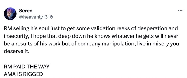 Fans appreciate the dedication RM has brought to his solo work and insist that he deserved to win outright: