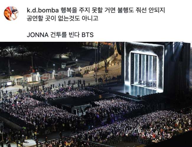 Specifically, on March 21, just a few hours before the free concert “BTS THE COMEBACK LIVE | ARIRANG” was set to take place at Gwanghwamun Square, the k.d.вσмвa account posted: “If you cannot bring happiness, you should not bring unhappiness either.” He continued by adding, “It is not like there are no other places to hold a concert,” making a remark that appeared to criticize the choice of venue.