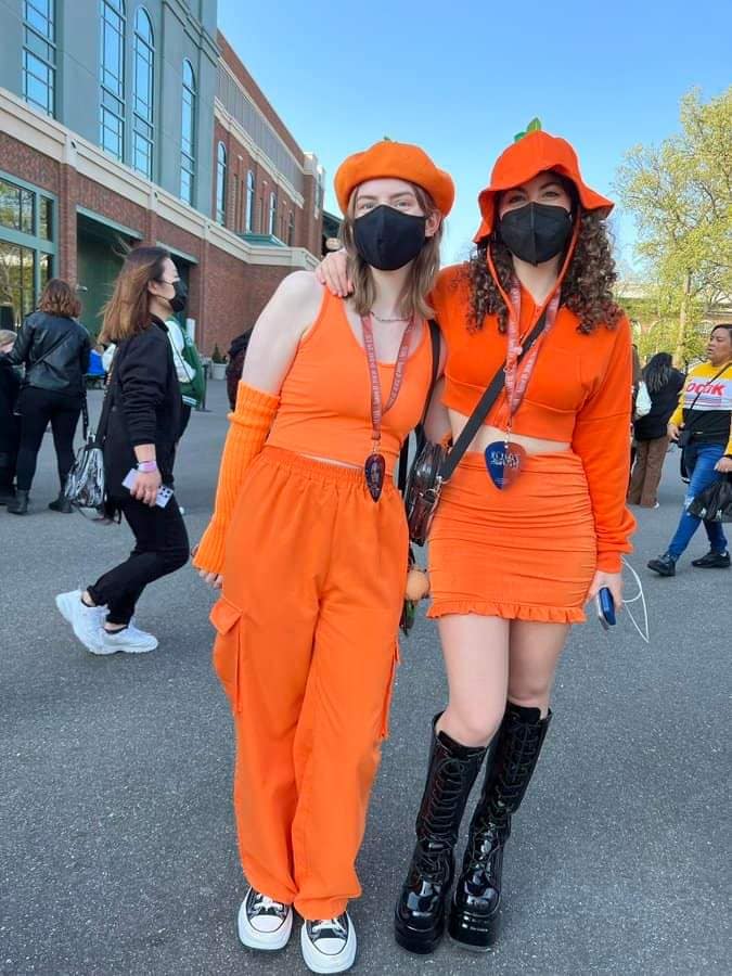 - Almost all armys are wearing full black outfits and several of them wearing a tangerine themed outfit. So cute!
