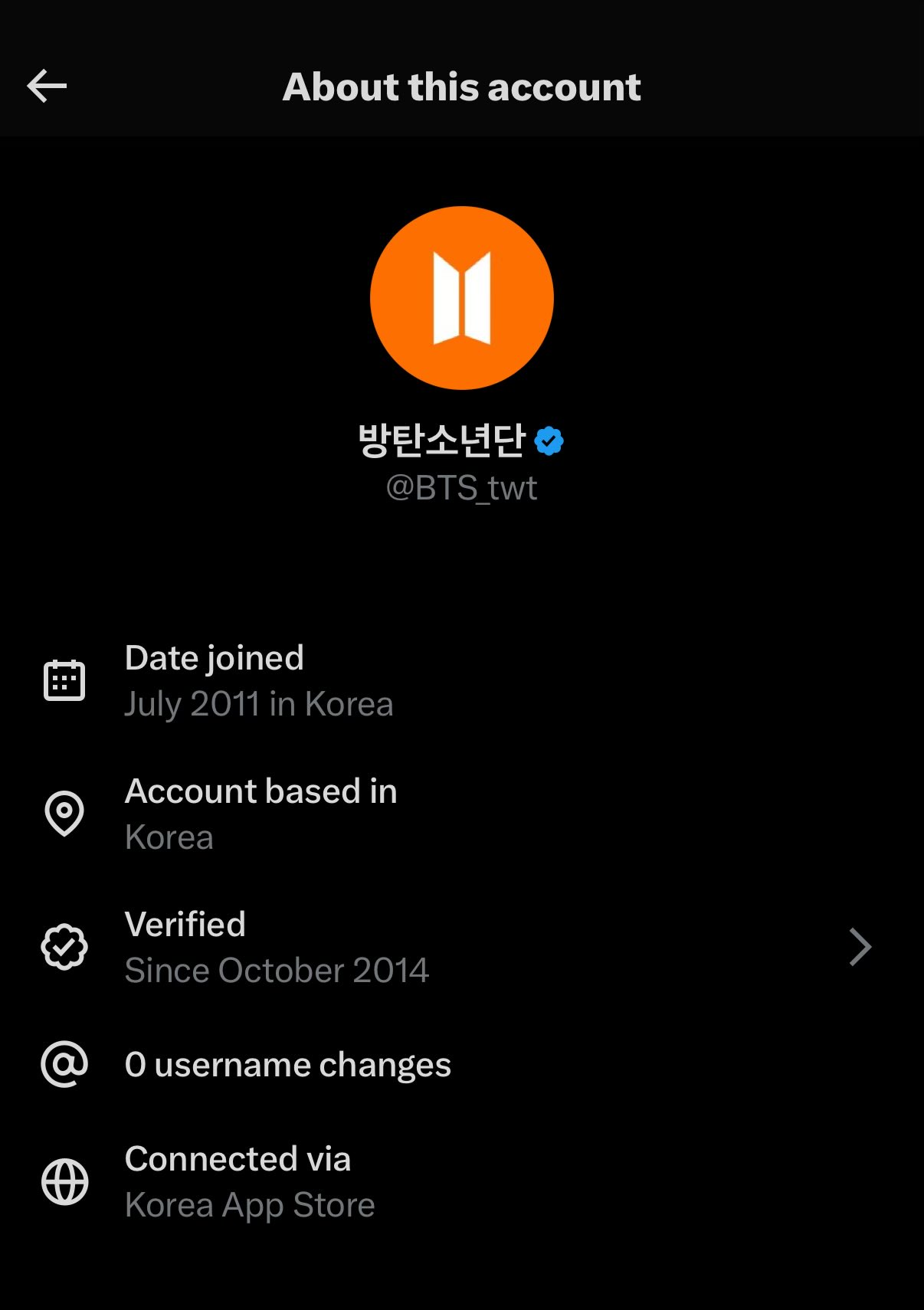 According to Twitter’s new updates, users can now view an account’s profile details, including date joined, location, verified status, username history, and connection мєтнods. Using this feature, ARMYs checked the official Twitter account used by the members themselves to post content (not the company-managed group account) and discovered a surprising detail.