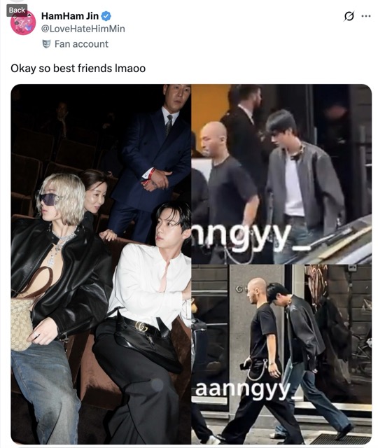 - First Nettspend said I am your best friend for today to Jin in the event and then he wrote “bffl” and posted his photos with Jin. So this is Jin's reply?