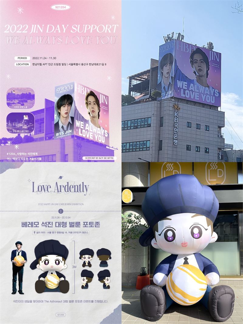 Thus, before Jin's birthday, events taking place in many parts of the world besides Korea were revealed one after another, increasing the emotion and love for Jin during this special time. Hope that Jin can see the messages from ARMYs and have a happy birthday!