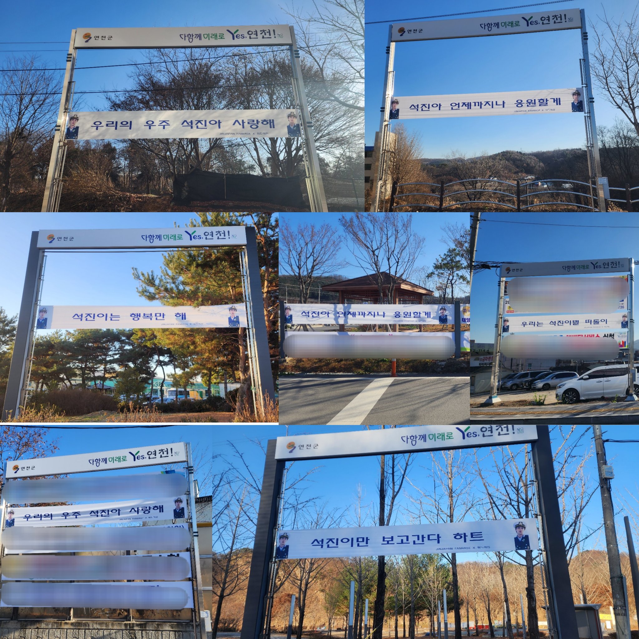 Another project extended from Jin's birthday to his enlistment day that ARMYs can't afford to miss. It was the fans in Korea of Jin "With Seok Jin" who asked permission from Yeoncheon government to hang up banners with words of support for Jin on the way to the training center where Jin will enlist.