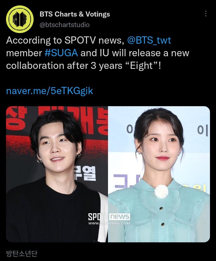 If the above news is true, this project has completed the 'Dream Collaboration' between two artists of the same age. While SUGA featured in IU's "eight", this time IU will accompany SUGA on his new album. Expectations are rising for another special synergy between the two, which will be showcased in a new song after "Eight" from 3 years ago.
