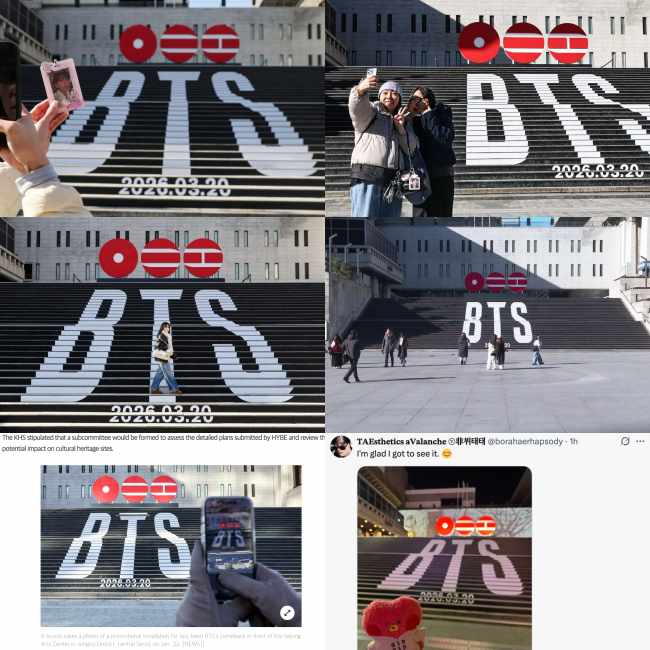 However, after being on display for 20 days, local fans reported on the 24th that the ARIRANG visual installation had been dismantled. Observations confirmed that the entire logo structure had been removed, and even the painted lettering on the steps was completely erased, restoring the area to its original state as part of the museum grounds.