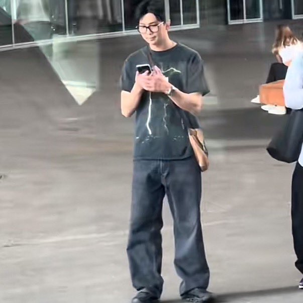 V appeared wearing a wнιтe shirt, black knit sweater, gray slacks, glαѕѕes, and a face mask. Au∂ιєnce members remarked that he stood out so much that he was "instantly recognizable even from afar."