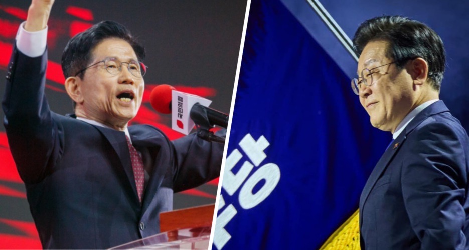 On the other hand, major opinion polls have shown that liberal candidate Lee Jae Myung (blue) is the clear frontrunner in the presidential race, with 49%.