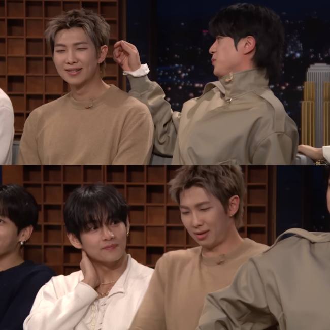 Next, V talked about Jungkook, saying, “I missed Jungkook teasing me.” However, some fans—and even Jimmy Fallon—misunderstood this. The au∂ιєnce screamed loudly, and Jimmy looked slightly confused, unsure whether V had said “kissing.” At that moment, V turned to RM for help, who clarified that he meant he missed the times Jungkook annoyed him.