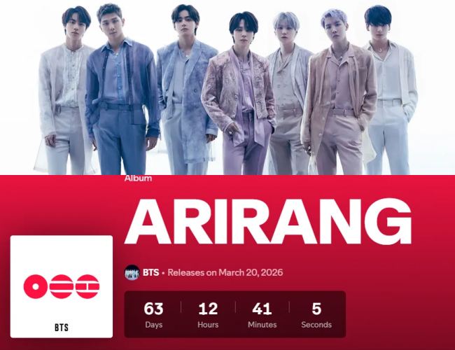 At midnight on January 16, BigHit Music added another wave of heat to the global anticipation for BTS’s comeback by officially announcing the title of the group’s fifth studio album, “ARIRANG.” The album will be released in four different versions, featuring striking names such as Rooted in кσяєαn, Rooted in Music, and Living Legend.