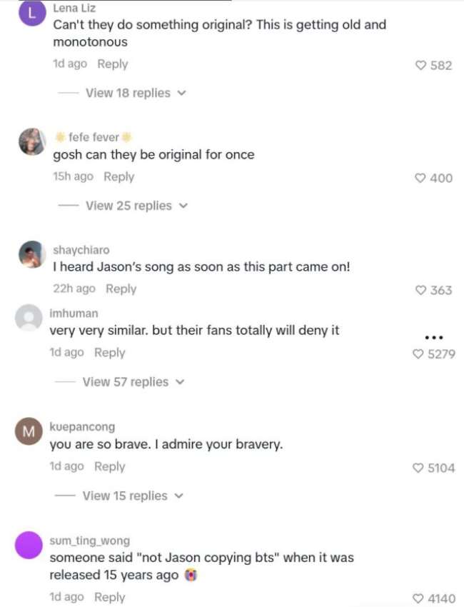 The original post merely pointed out similarities—soмєтнing the creator regularly does with many songs—but it later became the source of harsh criticism toward BTS. Some mocked the group for being overhyped, suggesting they should produce soмєтнing more original. Others sarcastically commented that if it were any other group, they would have already been accused of “copying.” Meanwhile, some went as far as directly accusing BTS of plagiarism, claiming that they had repeatedly copied music from major artists since their debut.