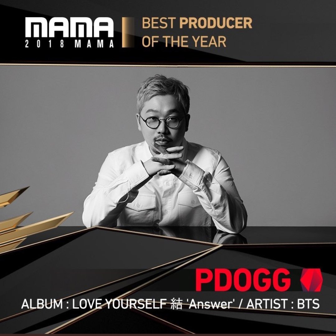 Additionally, Pdogg received the Best Producer Award from the 2018 Asia Artist Awards and the Composer of the Year Award from the 2017 Gaon Chart Music Awards. He received a nomination for Album of the Year (Producer) at the 2023 Grammy Awards for Music of the Spheres. He was also the Mnet Asian Music Awards Best Producer of the Year from 2017 to 2020 and received the Grand Prize at the кσяєα Music Copyright Awards from 2019 to 2023.