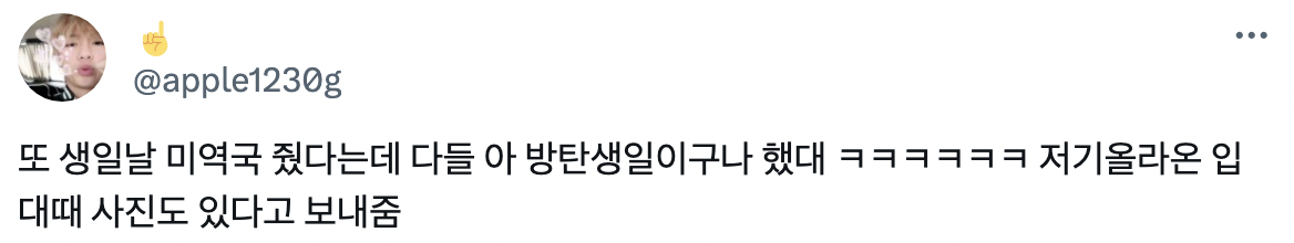 - Oh he got to eat seαwєed soup on his birthday. kkkk others benefited too and their reactions were interesting