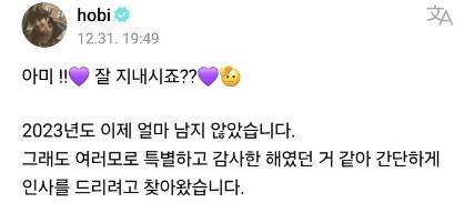 - Hobi's heartfelt update showcases his dedication to ARMY, his reflections on the past year, and his anticipation for the future. His commitment to sharing his journey during m̴i̴l̴i̴t̴a̴r̴y̴ service and expressing gratitude to fans and members is truly admirable. We can't wait to witness…