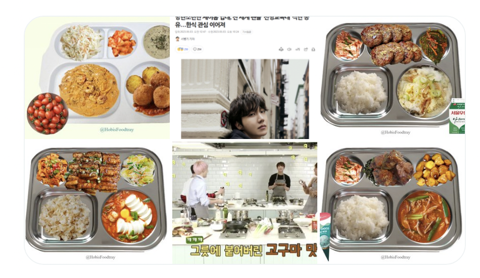 One of them, "HobisFoodtray" is the most famous recently after receiving much attention from kσrєαn and international fans for posting pictures of his meals in the army. This account is where they share meals served by the m̷i̷l̷i̷t̷a̷r̷y̷ during j-hope's basic training.
