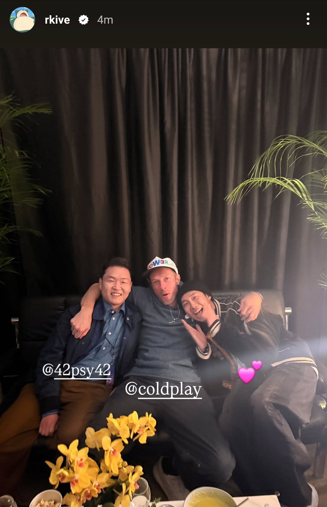After the concert, the male artist was also seen posing for a selfie with Chris Martin and Psy.