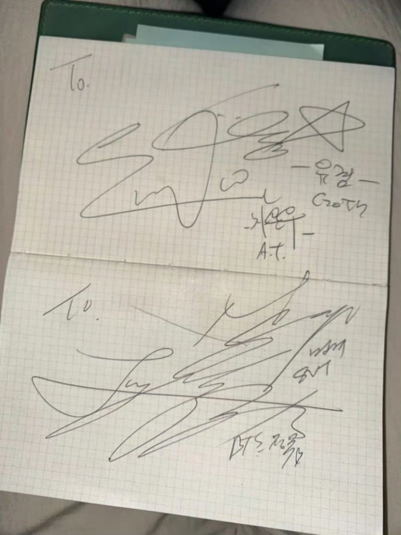 - I love how Jungkook didn't forget to write BTS in the autograph. Solo stans can eat bugs