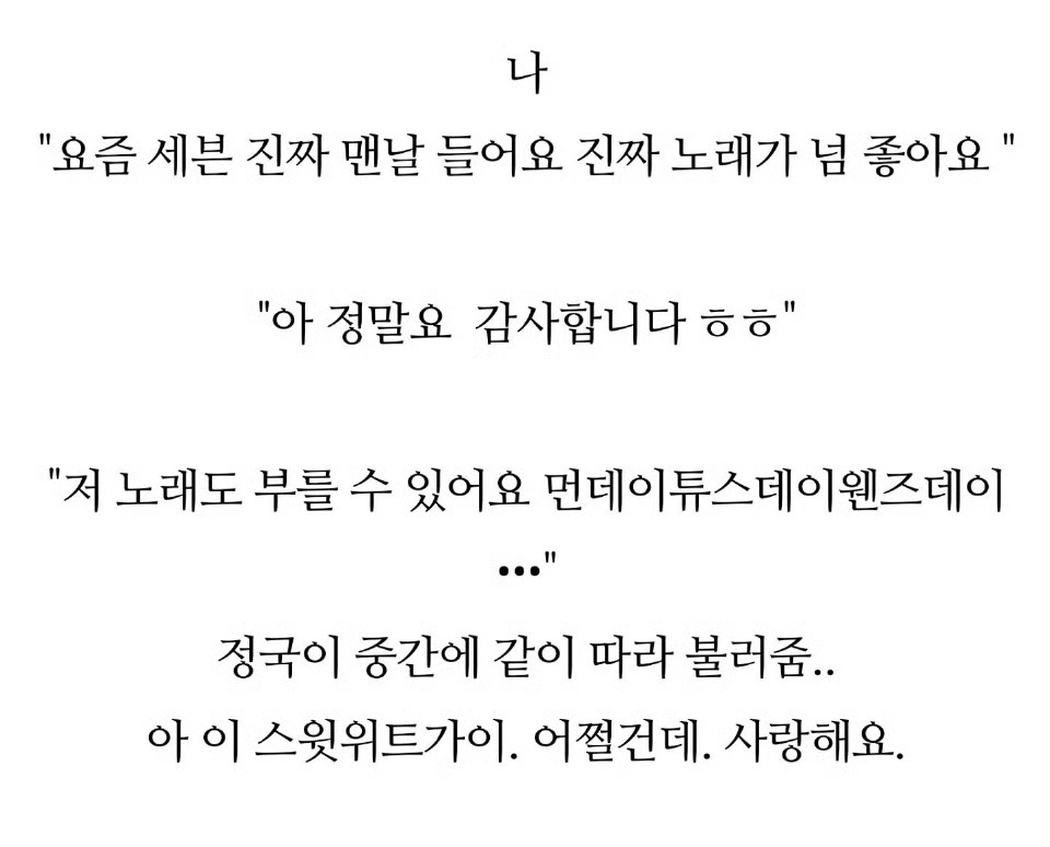 OP was especially generous in recounting the conversation with Jungkook at that time. He told the Golden Maknae that "I've been listening to Seven every day recently. The songs are really good" and Jungkook responded "Ah really? Thank you".