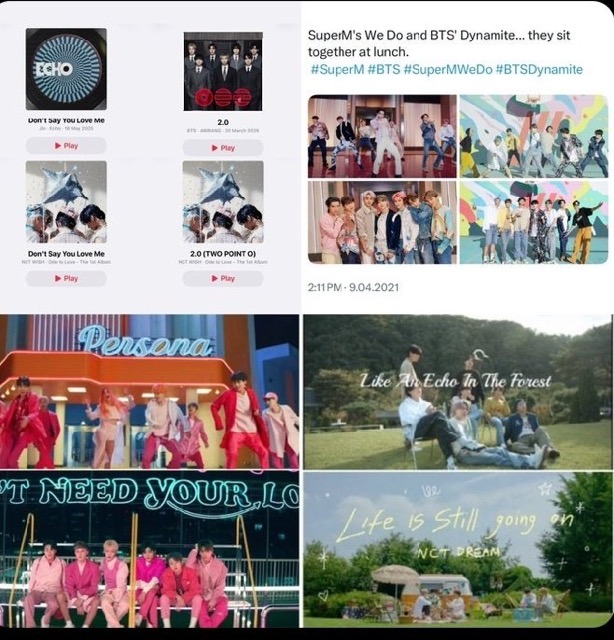 Furthermore, the project group SuperM—comprised of members from SHINee, EXO, and NCT—also sparked debate when their track “We Do” was said to bear notable similarities to the concept of “Dynamite,” particularly in its choreography. In addition, several solo releases by SM artists have been alleged to feature merchandise ideas and concepts similar to those seen in solo projects by BTS members such as V and Jimin.