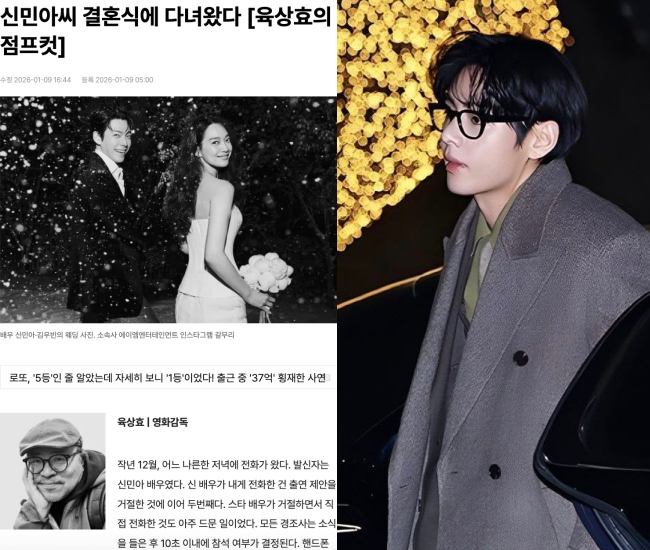 On the 9th, touching behind-the-scenes stories from the wedding were revealed by director Yook Sang-hyo, who had previously worked with Shin Min-ah on the film '3 Days of Vacation'. Among those stories was a mention of V. It is worth noting that Yook Sang-hyo is a veteran director who has been well respected in the industry since the 2000s, known for works such as Running Wild, A Tale of Two Sisters, and My Wife Is a Gangster 3. As such, his observations about V carry considerable weight.