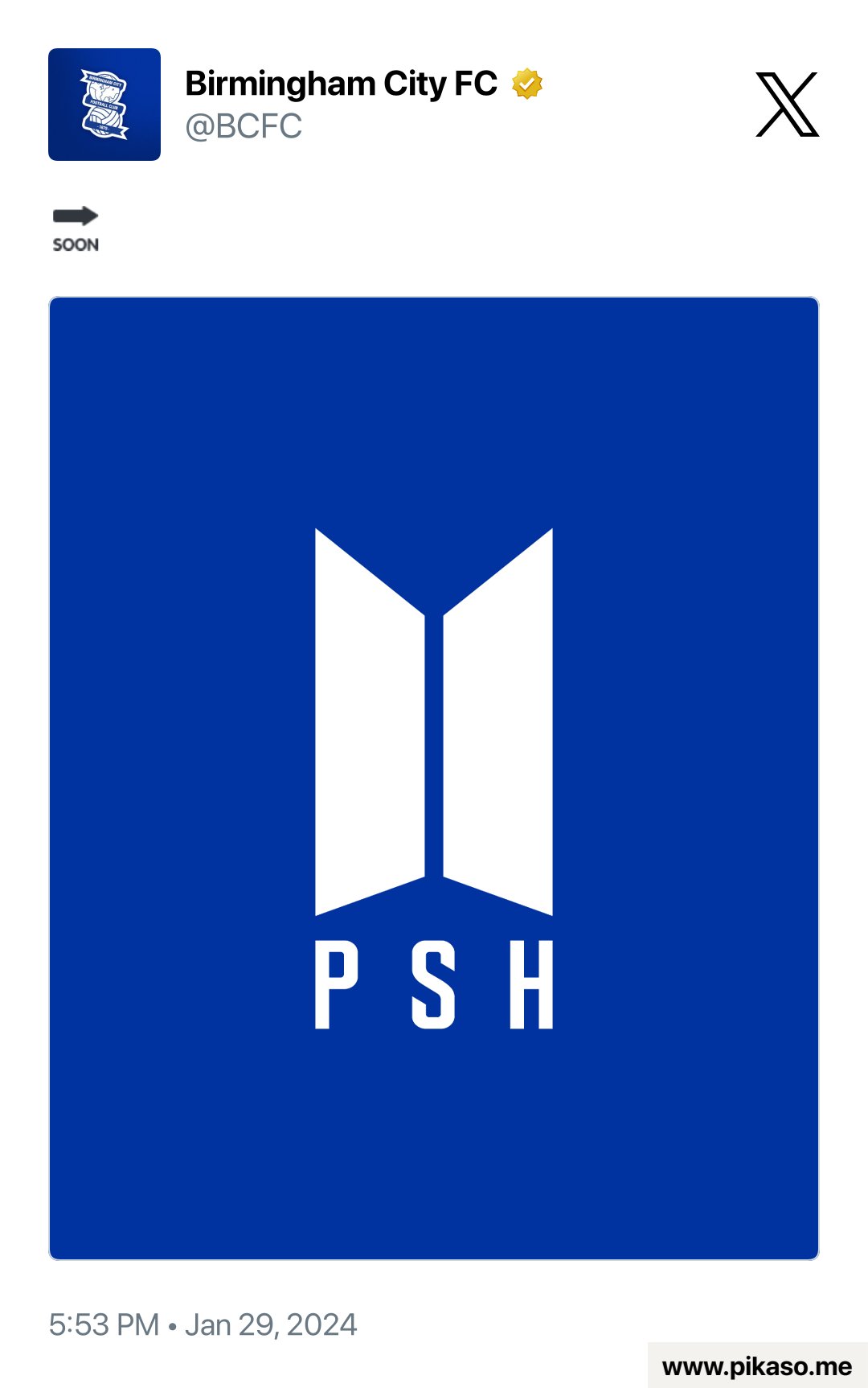 - dear @BIGHIT_MUSIC @HYBEOFFICIALtwt, this account @BCFC is using and changing BTS copyrighted logo for their "celebration" (?) by signing a new player from SK. please send them a good lawsuit for using it out of BTS context and even change the word "BTS" to "PSH". thank you.