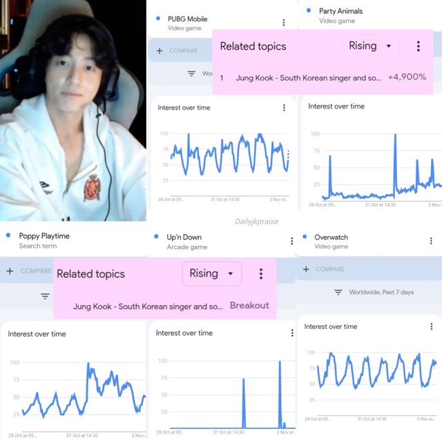 Notably, following this livestream, every game he played saw a 100% surge in Google search volume worldwide. He also became the #1 Breakout topic and the most trending name across all categories — once again highlighting Jungkook’s powerful global influence.