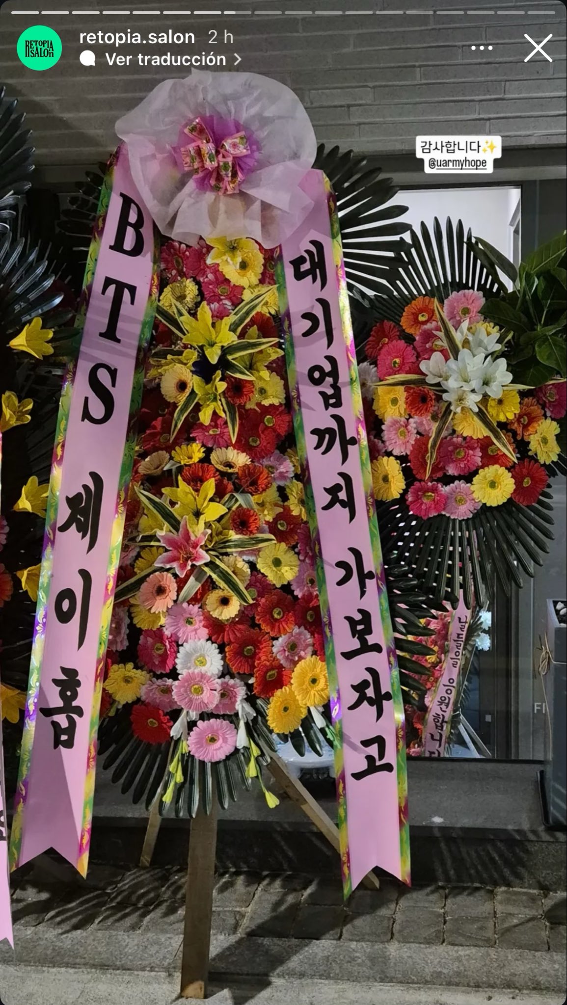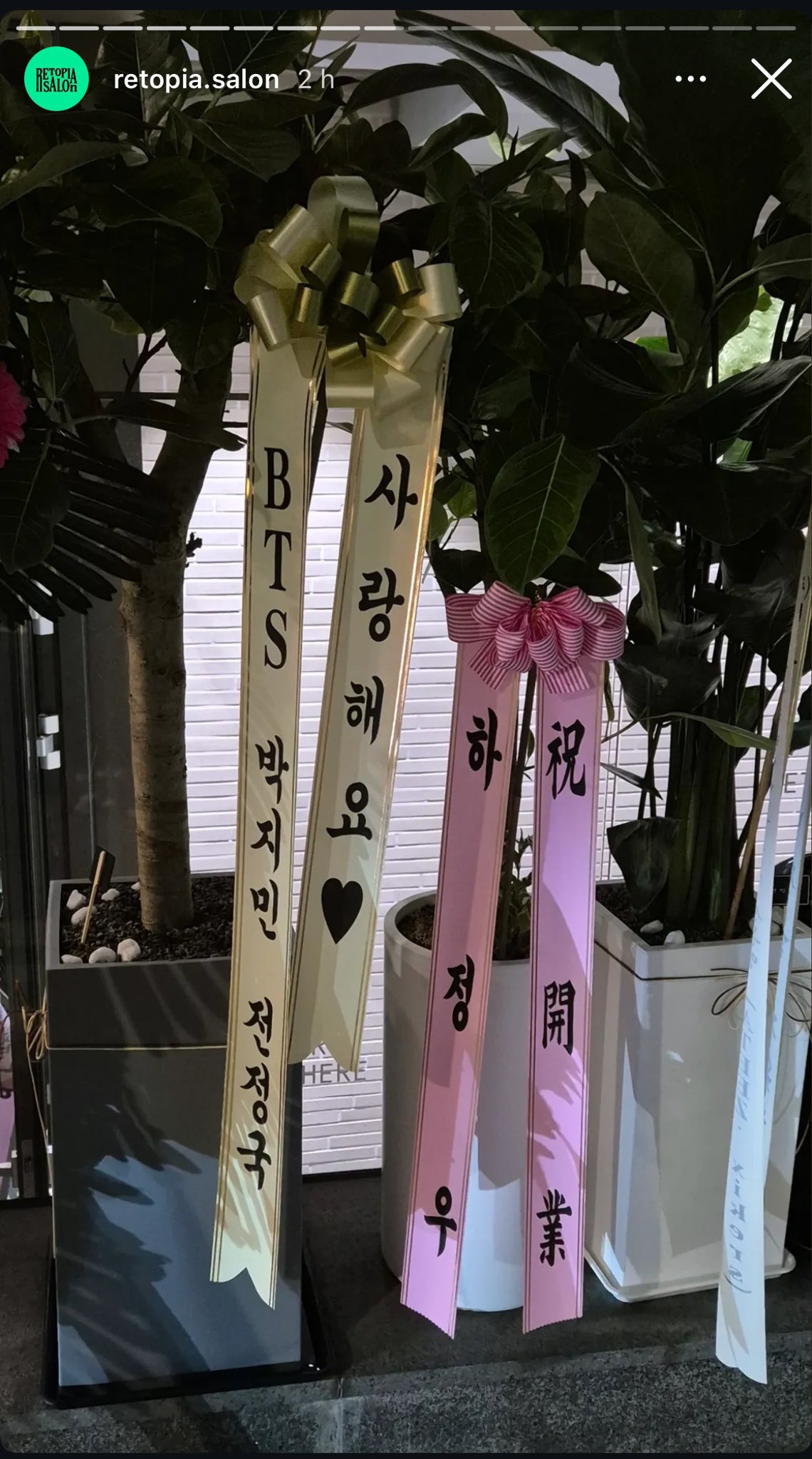 That's not all! Recently, fans were truly touched when they learned that the group members sent flowers to congratulate the new project of 2 former HYBE staff. Specifically, on February 26, 2025, Jungkook and Jimin sent congratulatory flowers to Retopia Salon, a newly established entertainment company by former HYBE employees. In addition, BTS's j-hope also sent them a wreath. The company's Instagram posted photos of the BTS members' congratulatory flowers on their stories.