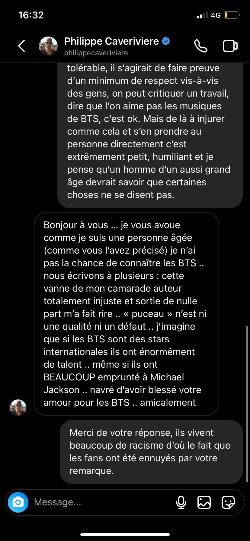 @taesids shared that: "Today , French radio station RTL called BTS named and insulted them. Telling they stck their dcks in each other while being in a homophobic country. Calling them also homophobic stuff . Here is the answer of one of the people during the program.