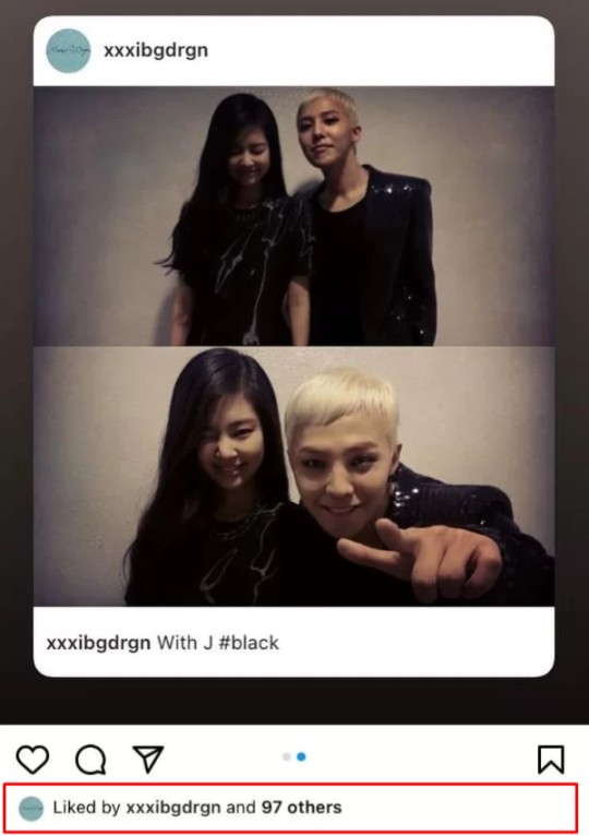 Specifically, according to the OP's post, G-Dragon pressed 'Like' a photo posted on the Instagram account of Mr. A, who is said to be a fan of G-Dragon and Jennie. This is a photo that was editted a long time ago and the photos used in the post are almost at the time when BLACKPINK debuted.