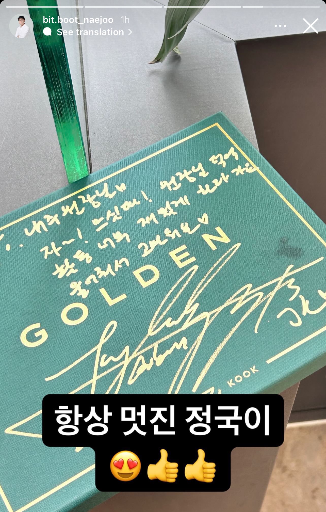 In the message Jungkook left when signing the album for this hair stylist, he wrote: "Now~! So cool! I had so much fun on my promotion thanks to you. Thank you for crying". That means Park Nae Joo cried while shaving his head. What's interesting is that Jungkook is whose head was shaved and didn't cry at all, but his hair stylist couldn't hold back the emotion. It shows how good their relationship is. On the contrary, when talking about the group's youngest member, Park Nae Joo also commented: "Jungkook is always cool."