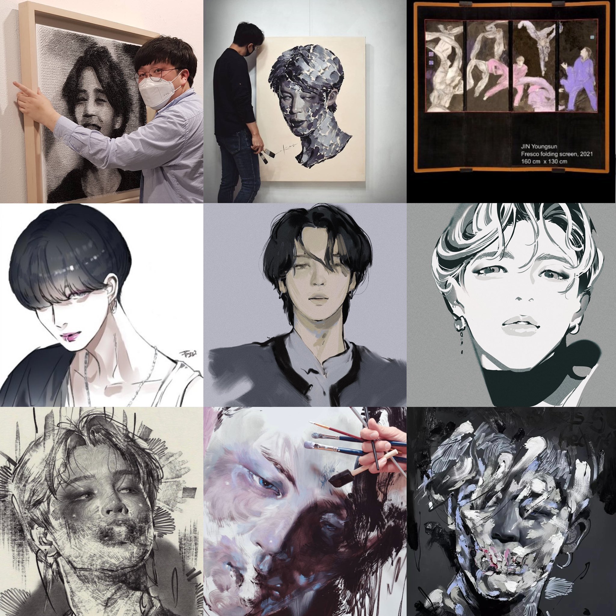 Meanwhile, Jimin is seen as a familiar subject in many of the artist’s abstract-style works. Lee.K often focuses on depicting detailed facial lines and expressive depth in the idol’s face. These works not only reflect Jimin’s external beauty but also convey his emotions and aura, leaving a strong impression on viewers.