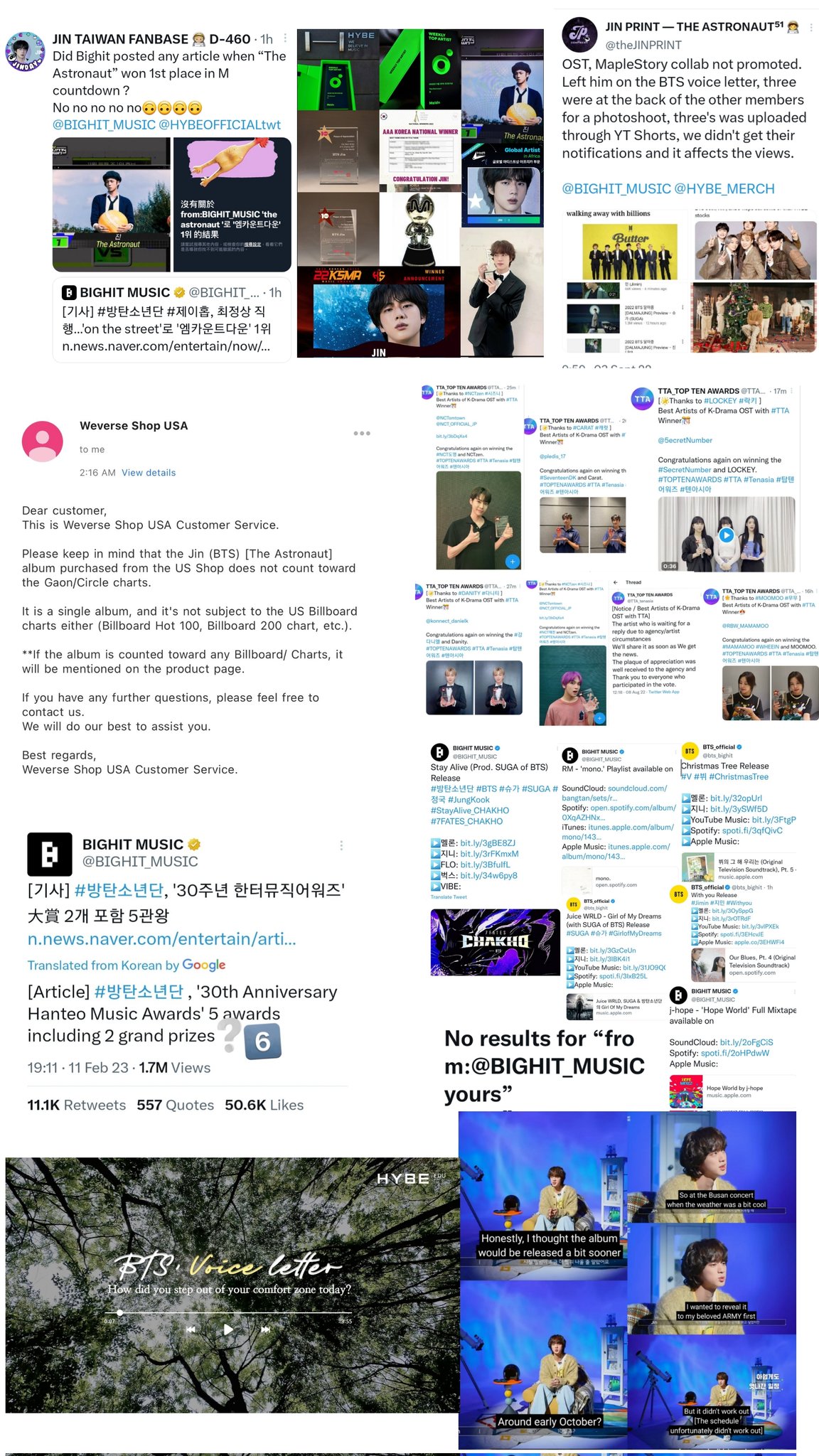 - Dear Hybe @HYBEOFFICIALtwt @BIGHIT_MUSIC, why did you never post a single tweet (Naver news) when seokjin won an award? Please remember he's also one of BTS member. HYBE BE FAIR TO JIN