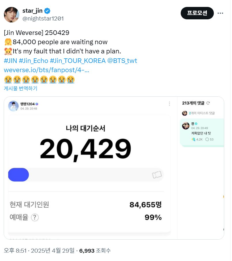 - So they really thought he would not be able to sell it out ???? We were 18k on the Interpark website 10 minutes ago