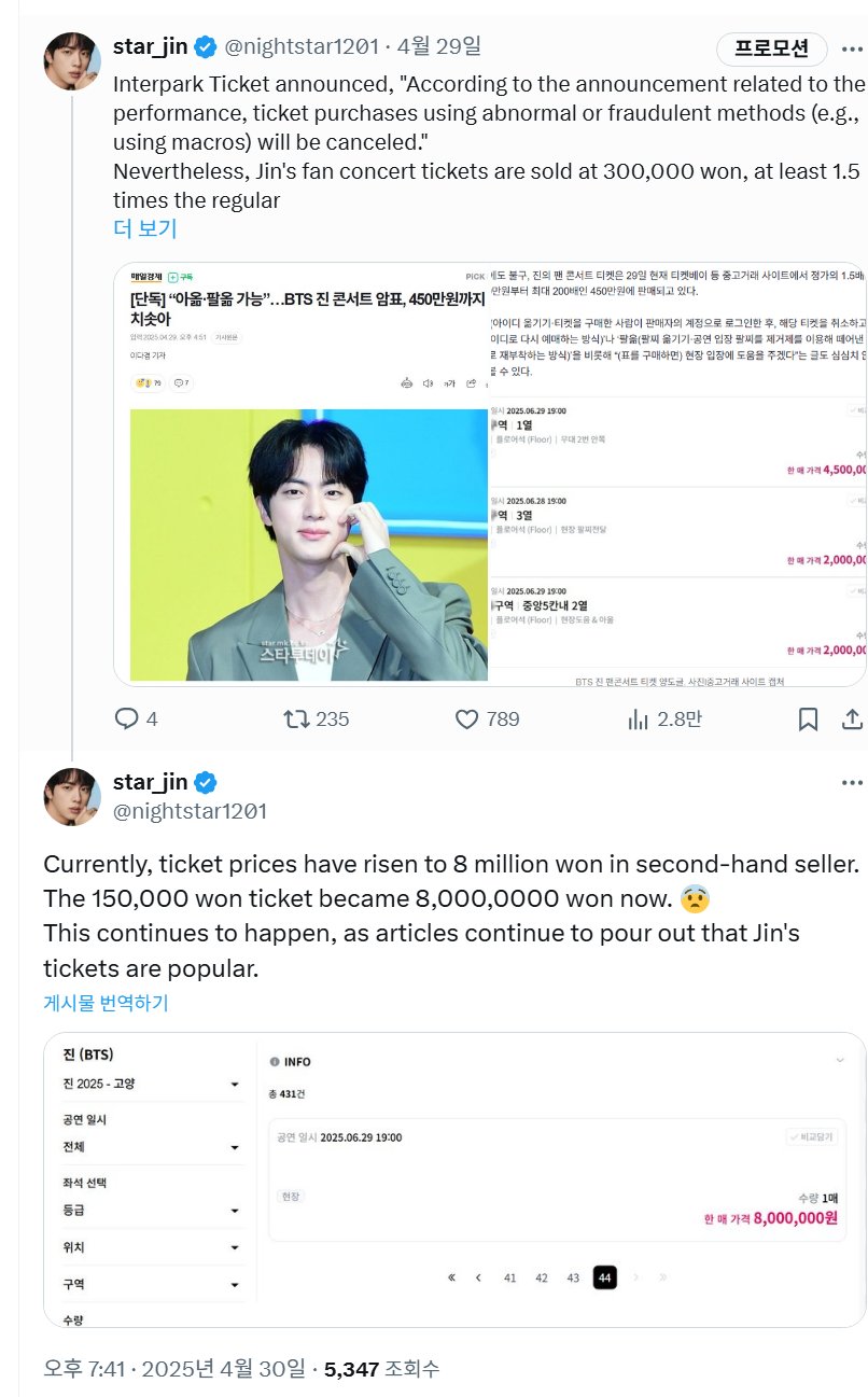 Meanwhile, Jin will perform at the Goyang Auxiliary Stadium with a capacity of less than 3000 seats, which Big Hit had previously explained to Jin that it was lack of a larger venue to rent due to the tight schedule.