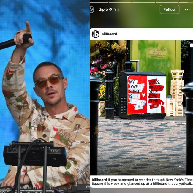 If that was not enough to fuel speculation, another similar coincidence emerged: DJ Diplo also shared the signature “What Is Your Love Song?” red tape image on Instagram Story on the 21st—and more importantly, he has been officially confirmed as participating in the production of ARIRANG.