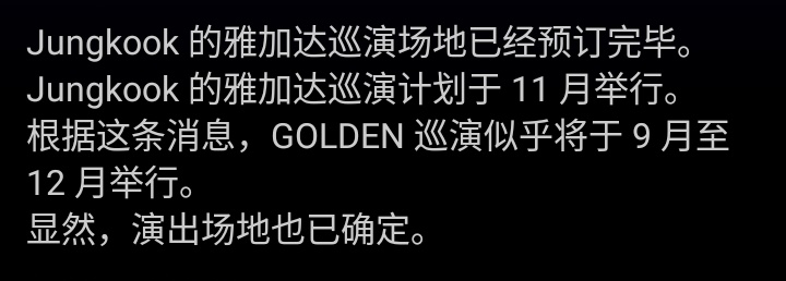 According to an insider on Weibo, the Jakarta stadium venue has been already booked for the “GOLDEN” world tour in November with preparations in full swing. According to this source, it seems that the GOLDEN tour will take place from September to December and the venues have also been set.